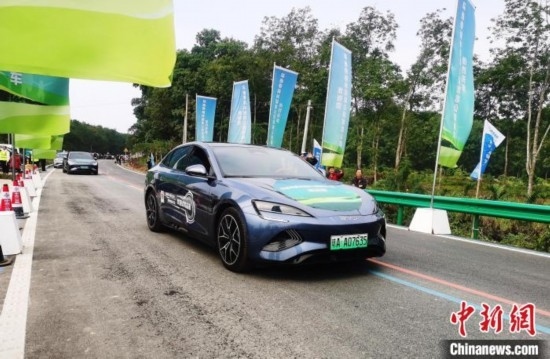 12月29日,環(huán)熱帶雨林國家公園旅游公路項目在海南瓊中黎族苗族自治縣黎母山鎮(zhèn)舉行通車儀式。第一批新能源車隊集結出發(fā)。中新網記者 張茜翼 攝