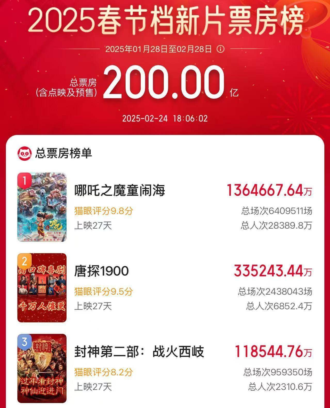 其中《哪吒之魔童鬧海》含預(yù)售總票房
