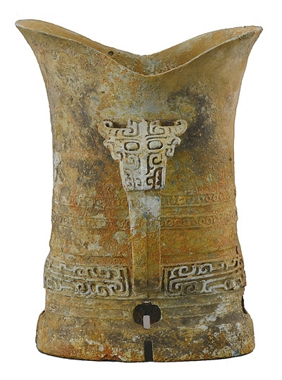 湖北黃陂盤龍城遺址出土的銅帶鋬觚形器。