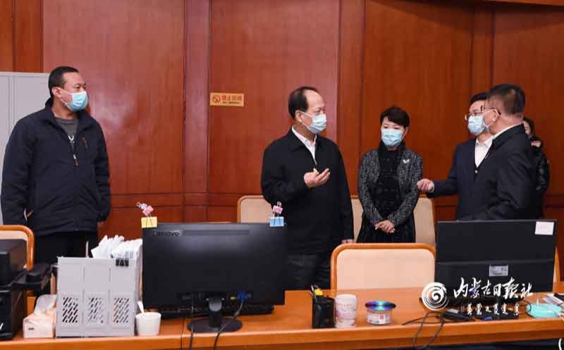 2月17日,自治區(qū)黨委書記、人大常委會主任石泰峰,自治區(qū)黨委副書記、自治區(qū)主席王莉霞來到呼和浩特市疫情防控指揮部調(diào)研督導疫情防控工作。內(nèi)蒙古日報社融媒體記者 袁永紅 攝
