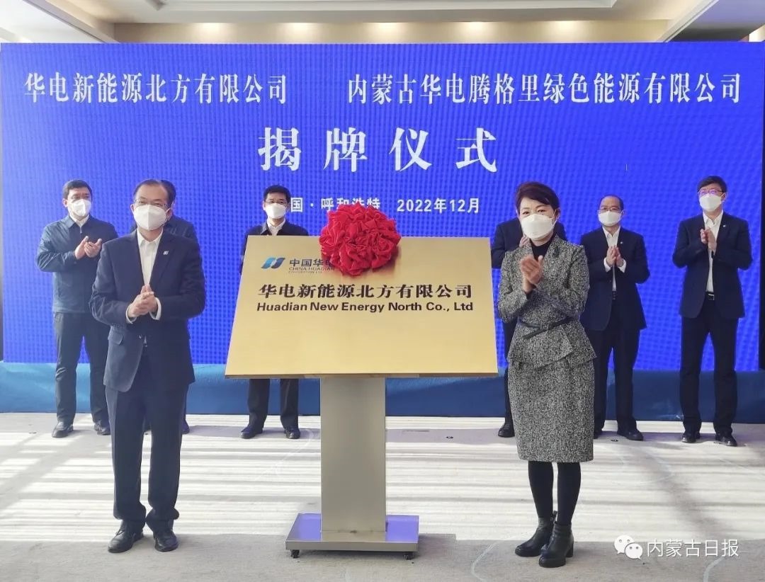 12月27日,自治區(qū)黨委副書記、自治區(qū)主席王莉霞,中國華電集團(tuán)董事長江毅為新成立的華電新能源北方有限公司揭牌。記者安寅東攝