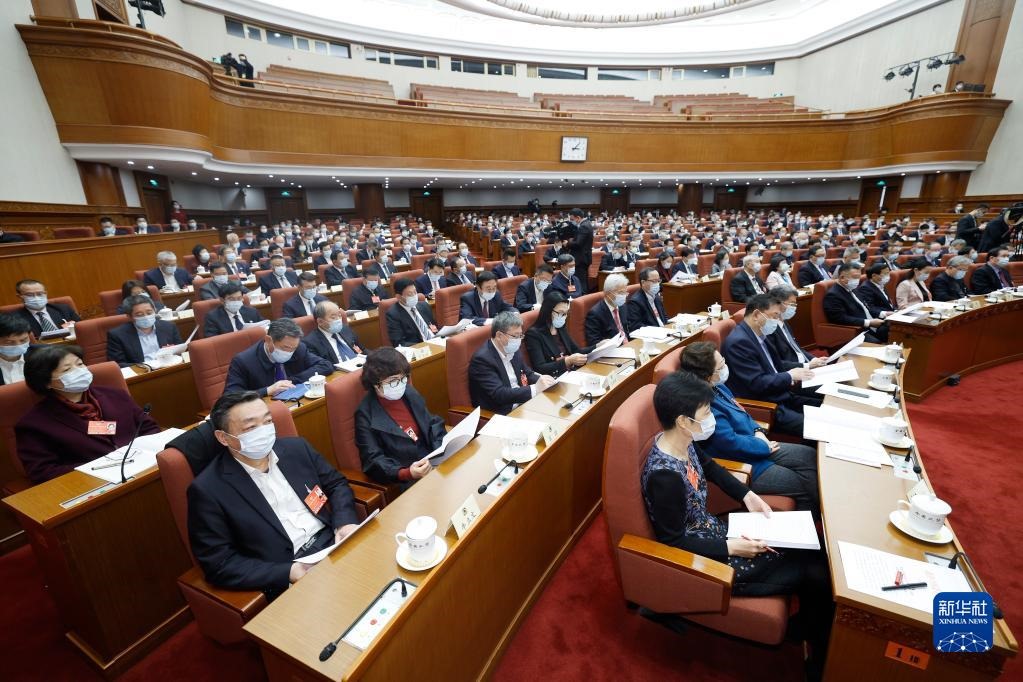 3月7日,全國政協(xié)十三屆五次會議舉行視頻會議。會議在全國政協(xié)機(jī)關(guān)設(shè)主會場,在委員駐地設(shè)分會場。這是主會場。新華社記者 殷博古 攝