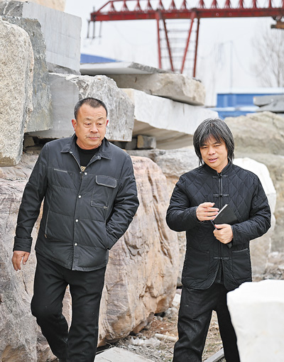 近日,全國政協(xié)委員、河北翰鼎雕塑集團(tuán)首席技師高英坡(右)圍繞傳統(tǒng)工藝項目保護(hù)開展調(diào)研。