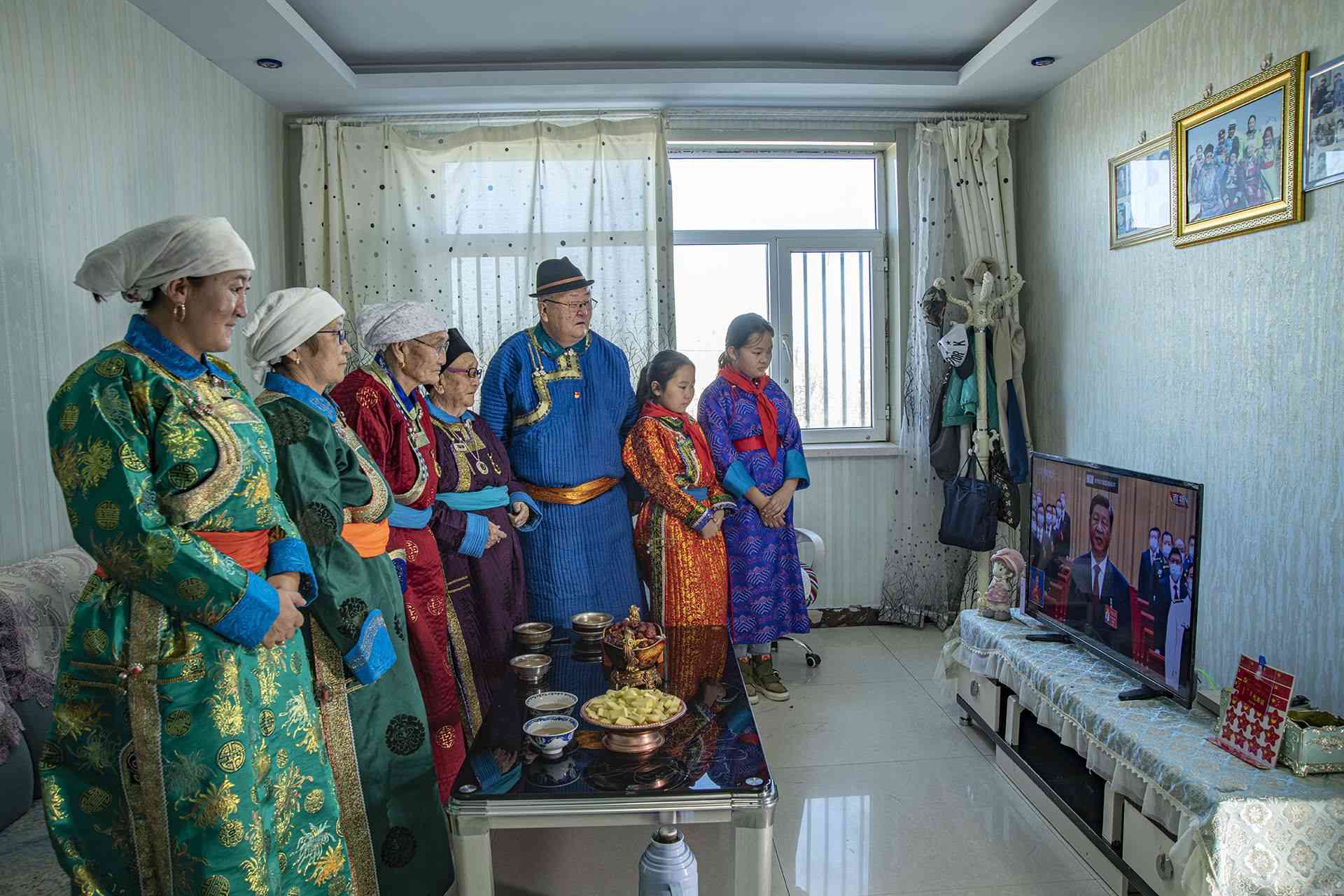 烏額爾很巴圖、斯琴格日樂是共產(chǎn)黨員,當(dāng)日他們與家人在錫林郭勒盟東烏珠穆沁旗烏里雅斯太鎮(zhèn)的家中收看黨的二十大開幕會(huì)。白嘎利攝