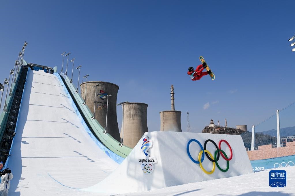 北京2022年冬奧會單板滑雪男子大跳臺決賽在北京首鋼滑雪大跳臺舉行。這是加拿大選手達(dá)西·夏普在比賽中(2月15日攝)。