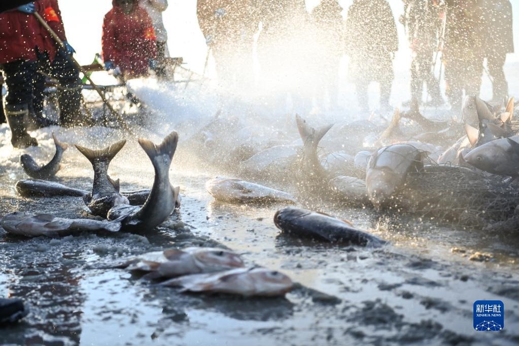 漁民在查干湖里捕魚(2021年12月26日攝)。新華社記者 顏麟蘊(yùn) 攝