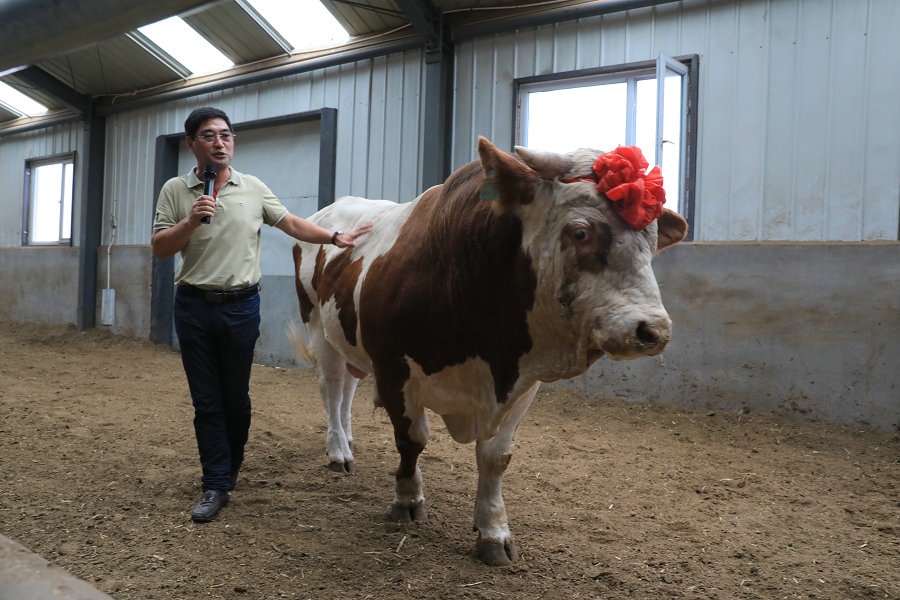 在內蒙古巴林左旗內蒙古廣匯牧業(yè)肉牛綜合示范園區(qū),頭戴大紅花的肉牛格外醒目,原來這是獲得該旗肉牛大賽二等獎的獲獎牛,重2200斤,價值33000元。