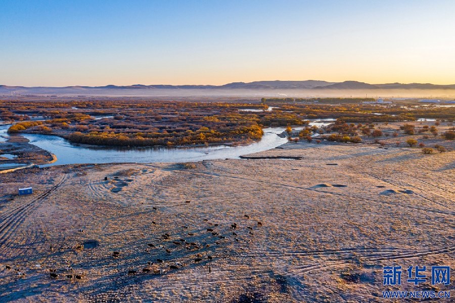 清晨的大興安嶺濕地,初升的太陽(yáng)映照滿地銀霜。新華網(wǎng)發(fā)(李明 攝)